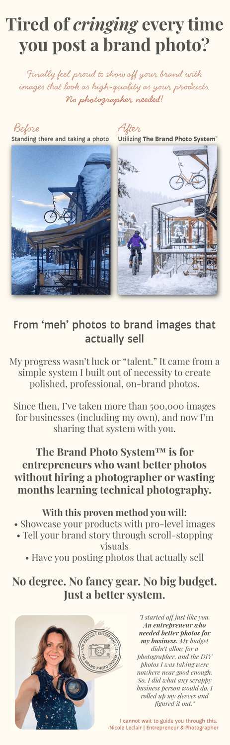 Ready to level up your product photos? Be the first to know when The Brand Photo System™ is ready. Provide your email, and I will reach out to you promptly when the course is ready.